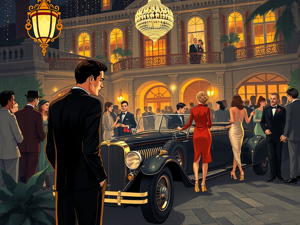 As festas luxuosas de Gatsby, regadas a música e bebidas, são metáforas da superficialidade de uma sociedade que busca prazeres momentâneos sem propósito maior. O brilho esconde o vazio existencial de personagens que vivem de aparências.